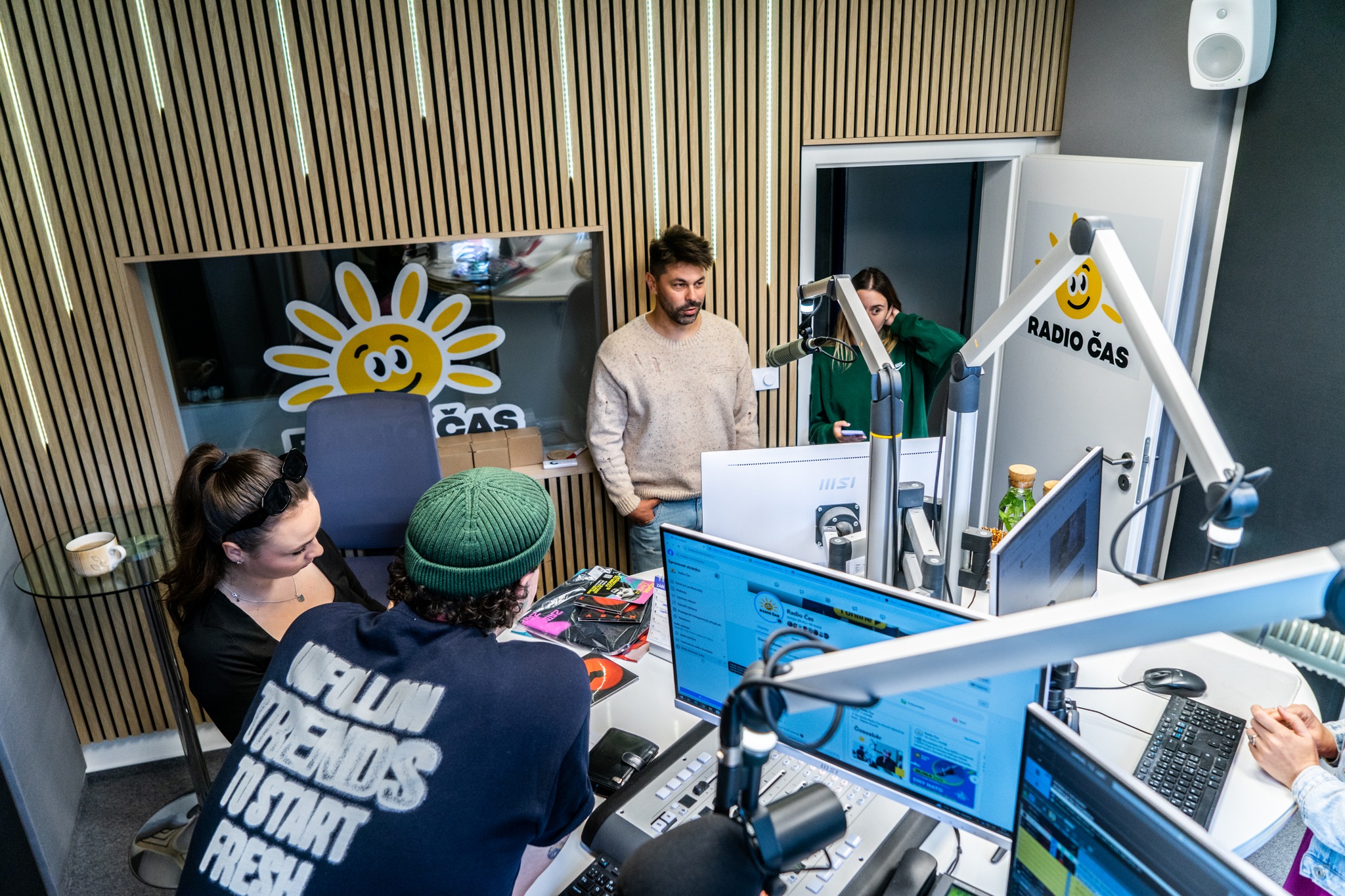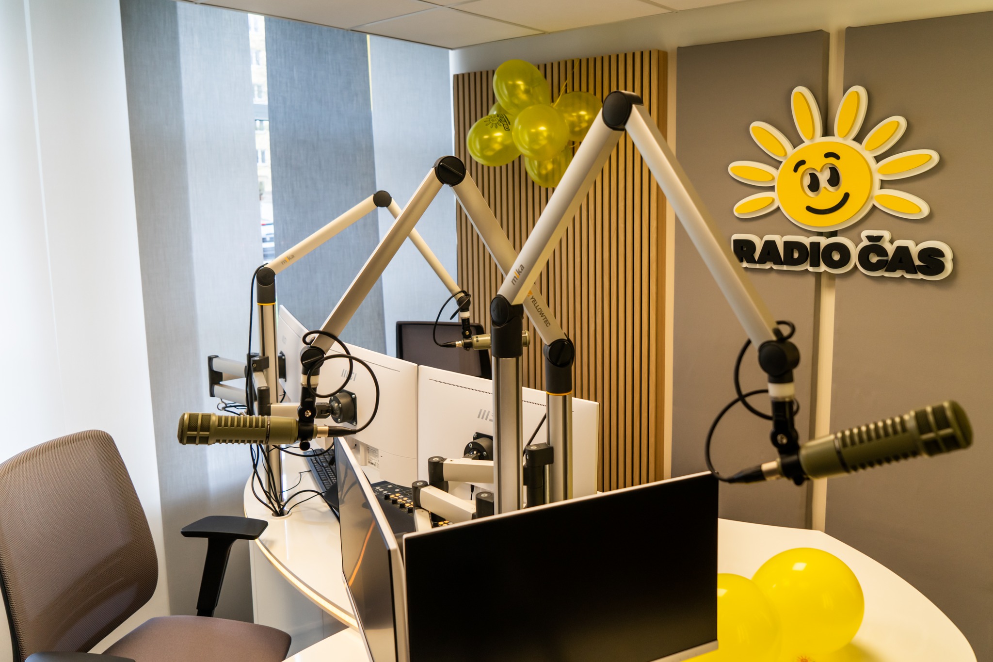 Naše studio prošlo pořádným refreshem — je teď moderní, designové a ještě příjemnější . 💛 Ať už k nám přijdou naši hosté nebo posluchači , všichni se u nás budou cítit skvěle. Moderátorům jsme navíc dopřáli prostředí, kde se bude vysílat s ještě větší radostí !